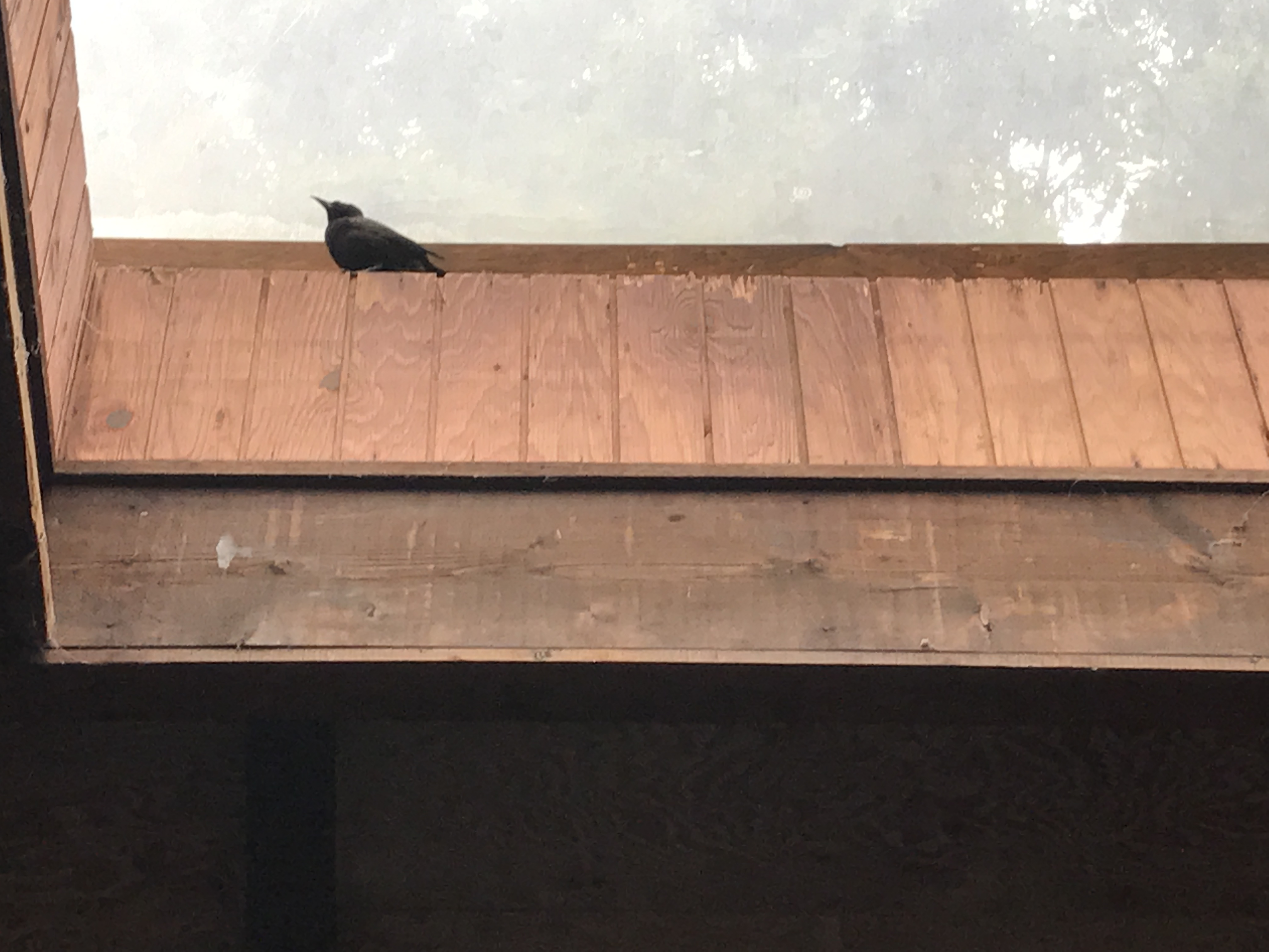No body was found, only noises in the living room loft (to which there is no access except via a large ladder). Maybe, Noel, and I stared and waited, but no luck. I went to bed that night making sure my ear plugs were in tact. Didn’t want strange bumps in the night to wake me. The next morning, I heard the bird again. He was on the ledge of the living room skylight. A big black bird.
